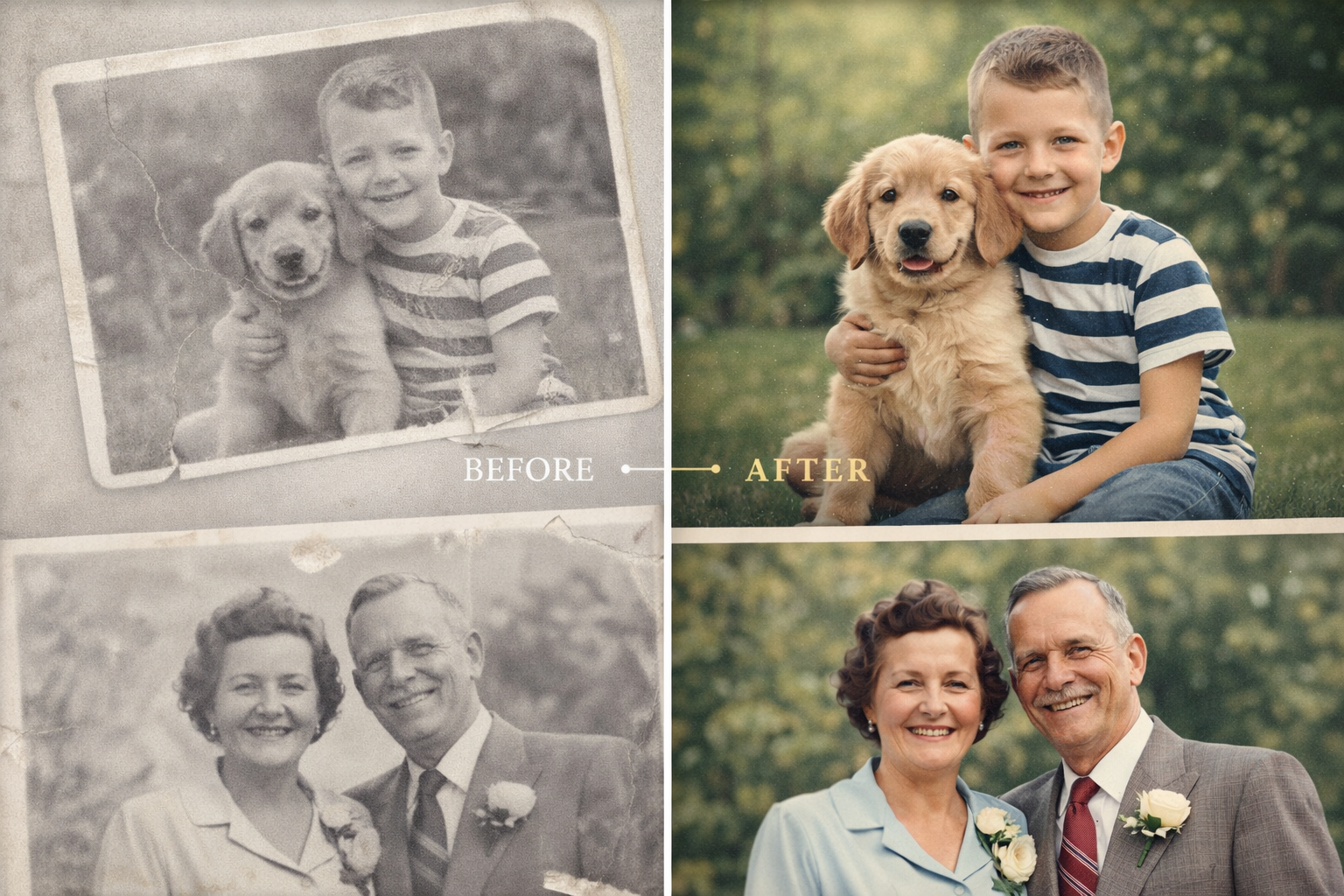 Upload your image, then drag the bar to compare the original with the restored version.